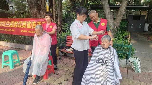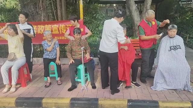 活动现场,志愿者迅速做好活动前的准备就绪,以饱满的热情迎接每一位居民。面对较多的理发需求,在居民等待间隙,志愿者贴心地为他们按摩,一边按摩一边亲切交谈;义工则在旁发放宣传单页,耐心讲解国家政策,同时开展健康知识普及、法律知识宣传和文明养犬倡导,并为参与活动的居民送上小礼品,让大家倍感暖心。志愿者凭借娴熟的理发技艺,耐心询问每位居民的需求,精心修剪发型,服务对象主要为60岁以上老年人和户外工作者。一位老人在享受理发、按摩服务后,紧紧握住志愿者的手,激动地表达感谢,直言活动做到了他们的心坎上。